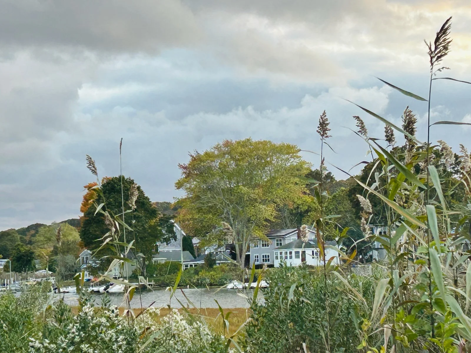 There’s a rhythm to the landscape beyond the garden itself. On certain mornings, fog settles in low, and the sound of fog horns carries farther than it should. The path down toward the small local yacht club runs alongside stretches of saltwater marsh that shift with the tide, quiet and atmospheric in a way that feels particular to the coast.