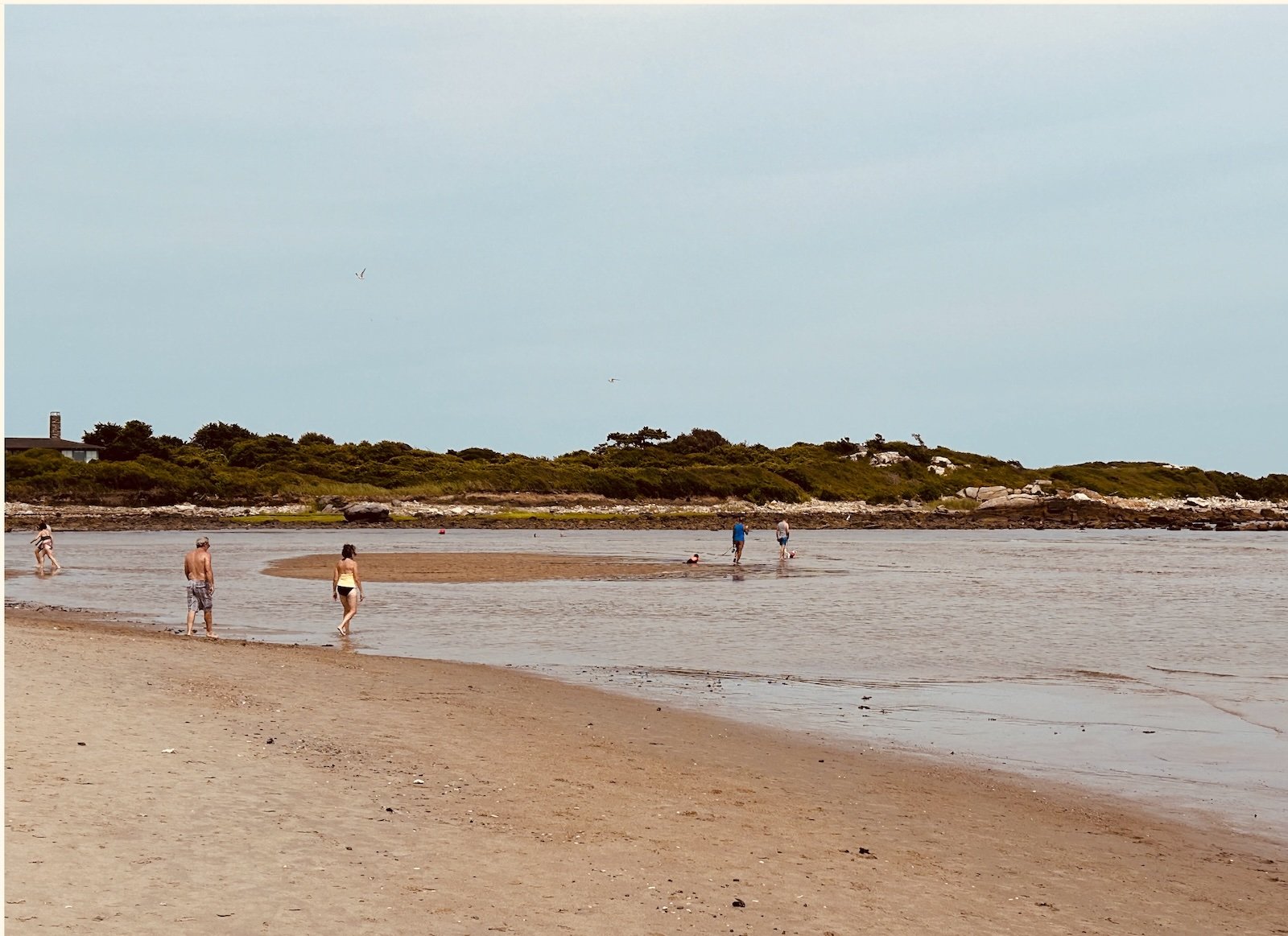 In the warmer months, kayaks are pulled into the water and guided slowly through the channels, following the edges of the marsh, watching for movement, and finally stopping along the ocean sandbar when the tide allows.