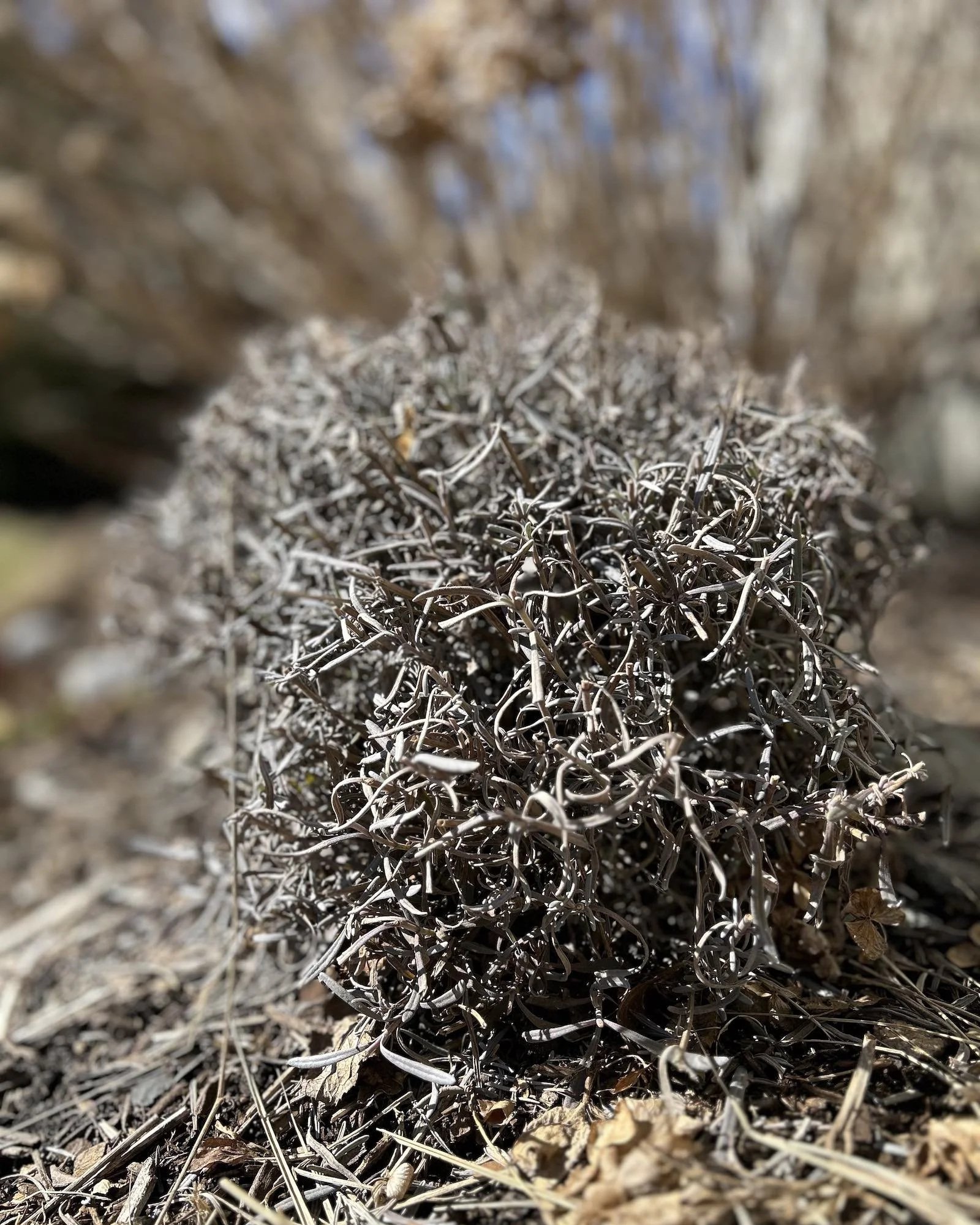 Here and there, the soil is disturbed where voles tunneled beneath the snow this winter.